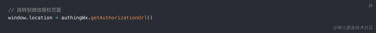 调用 getAuthorizationUrl 方法获取微信授权登录链接,修改 window.location 跳转到微信登录授权页面: