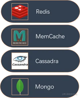 市面上类似于Redis,同样是NoSQL型的数据库有很多,如下图所示,除了Redis,还有MemCache、Cassadra和Mongo。下面,我们就分别对这几个数据库做一下简要的介绍: