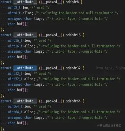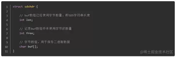 基于C语言中传统字符串的缺陷,Redis自己构建了一种名为简单动态字符串的抽象类型,简称SDS,其结构如下: