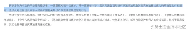 镭射财经注意到,拼多多在维权投诉指引中表示,作为中立的平台服务提供者,一贯重视知识产权保护,坚决反对任何违反有关知识产权法律法规规定的行为。
