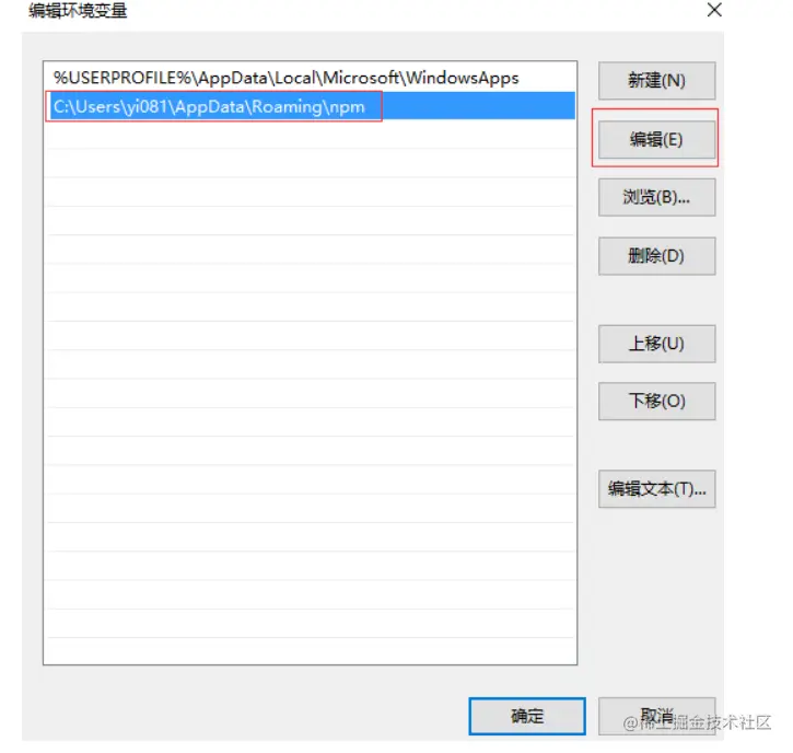 此处的环境配置主要配置的是 npm 安装的全局模块所在的路径,以及缓存cache的路径,之所以要配置,是因为以后在执行类似:npm install express [-g] (后面的可选参数-g,g代表global全局安装的意思)的安装语句时,会将安装的模块安装到【C:\Users\用户名\AppData\Roaming\npm】路径中,占C盘空间。