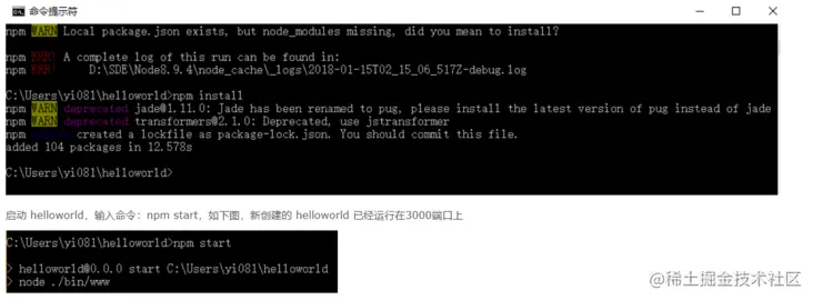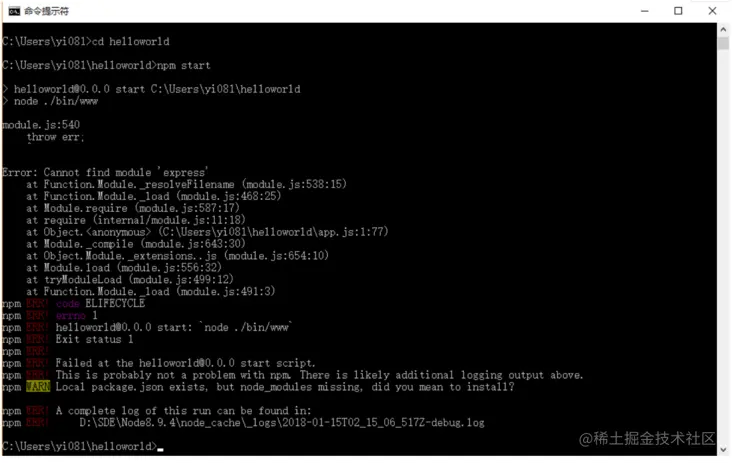 配置完后,安装个module测试下,我们就安装最常用的express模块,打开cmd窗口,输入如下命令进行模块的全局安装: