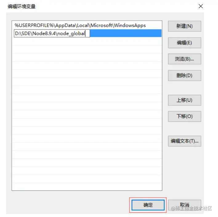 B、将【用户变量】下的【Path】修改为【D:\SDE\Node8.9.4\node_global】