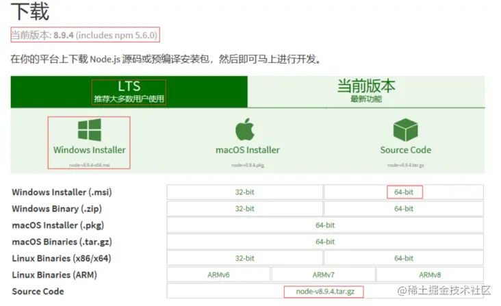 我下载的是 node-v8.9.4-x64.msi ,如下图: