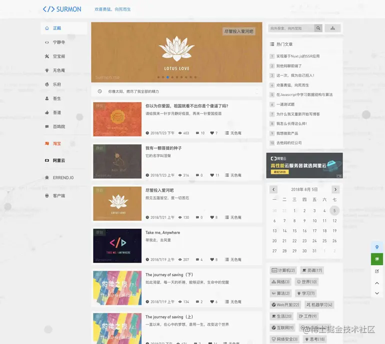 现场演示:surmon.me/ Github: github.com/surmon-chin…