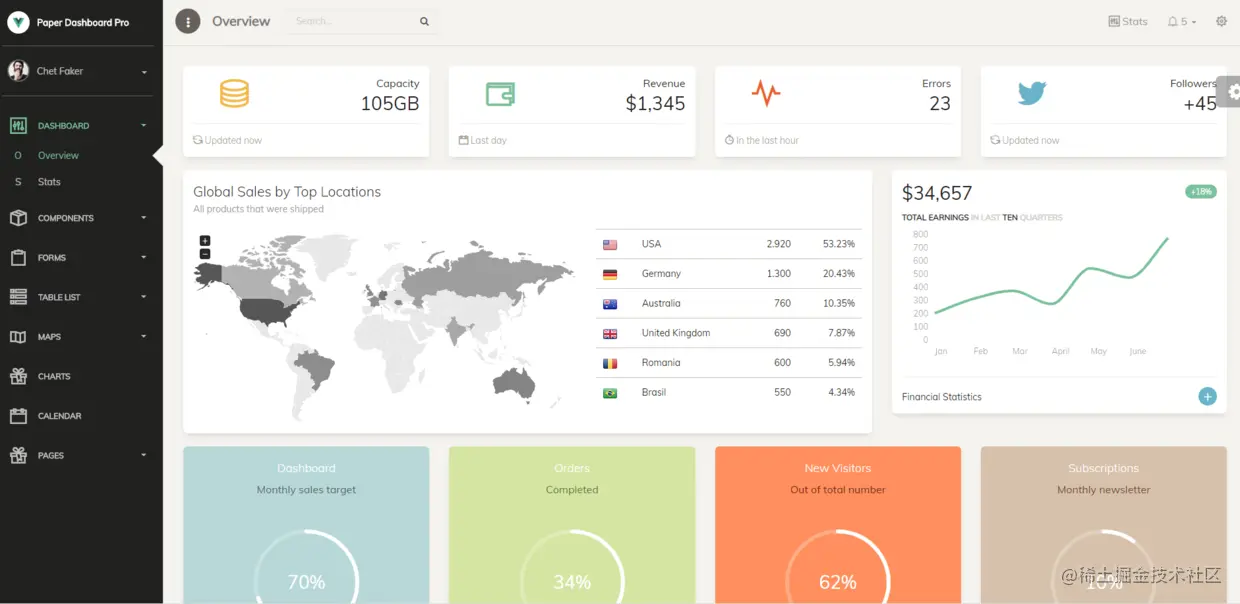Vue Paper Dashboard PRO 是建立在Bootstrap和Vue之上的漂亮资源。它将帮助您立即开始开发仪表板。Vue Paper Dashboard Pro是 Original Paper Dashboard Pro的VueJS移植版本。使用仪表板非常简单,但是需要具备Javascript,Vue和Vue-Router的基础知识。