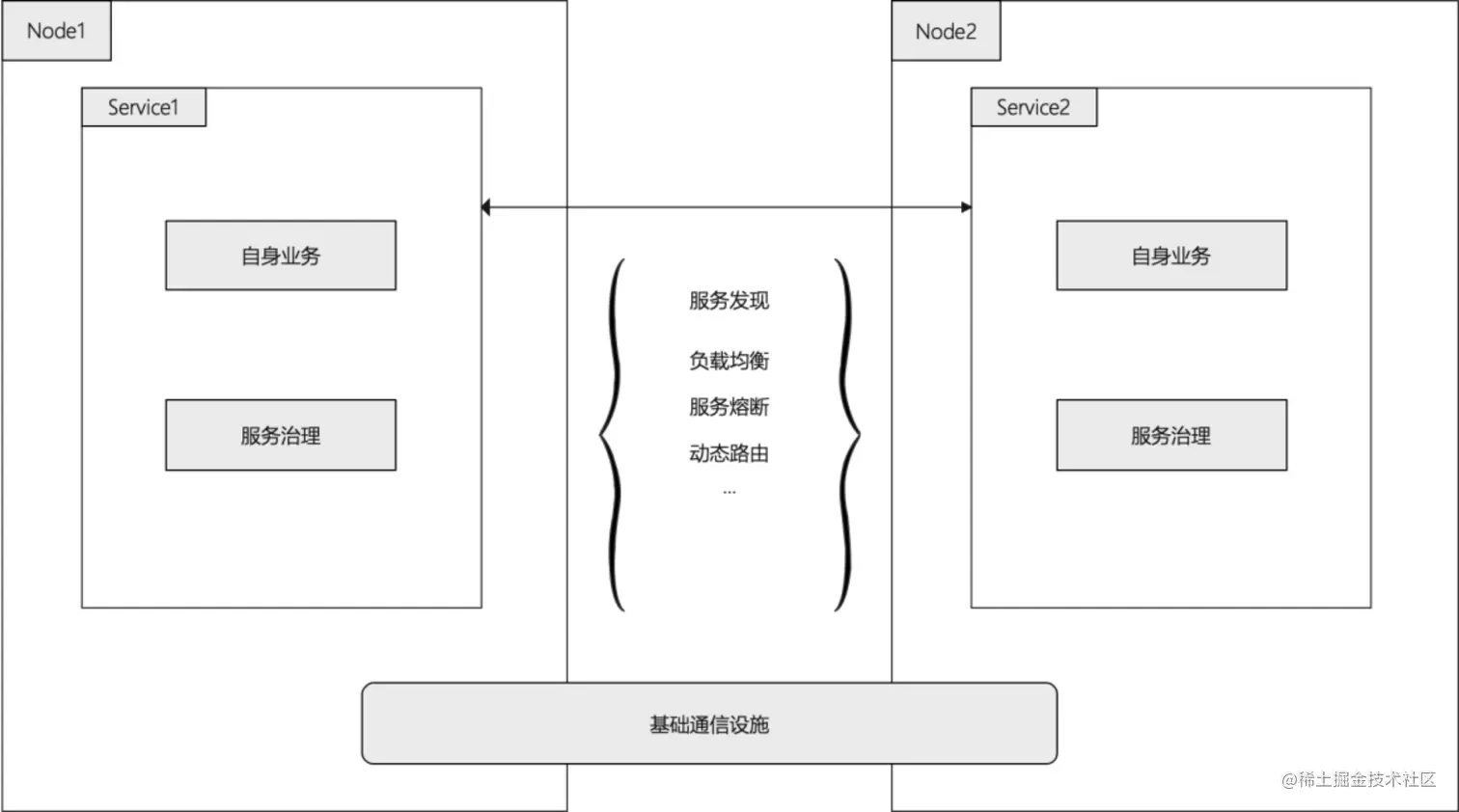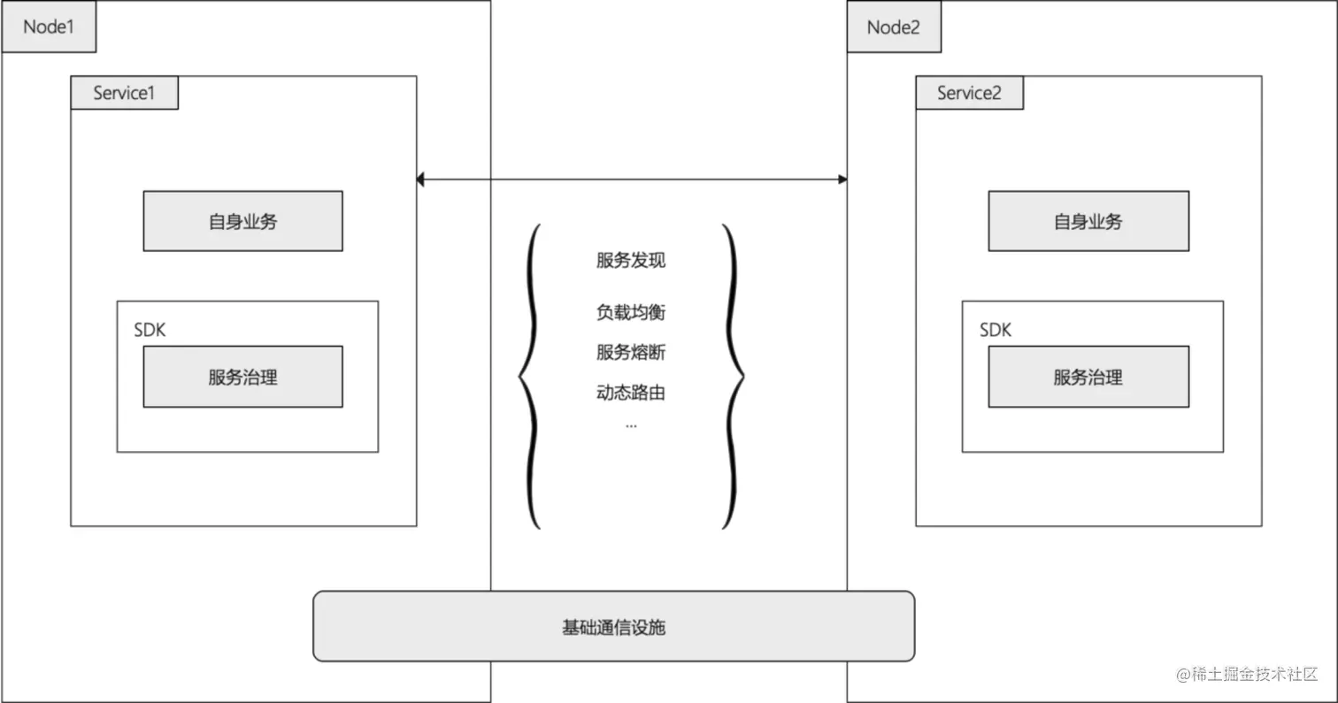 - 存在大量重复的代码,集群内的所有服务的业务代码都得实现这样一套治理逻辑,维护困难,搞不好一出bug还得所有服务都得改一遍