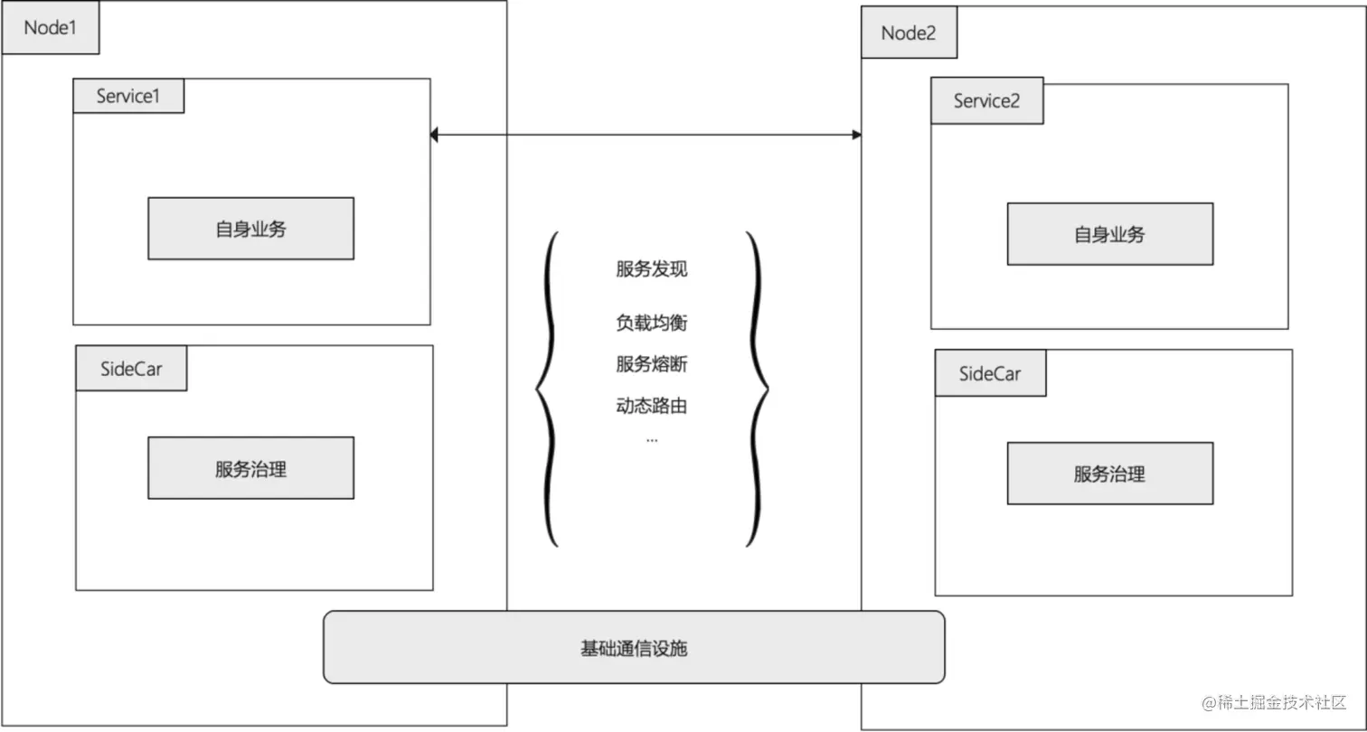 - 网格上的控制中心和应用节点上的proxy共同完成服务治理:服务注册、服务发现、服务熔断、负载均衡等功能,甚至能够实现动态路由分发、监控、调用链跟踪等高级功能