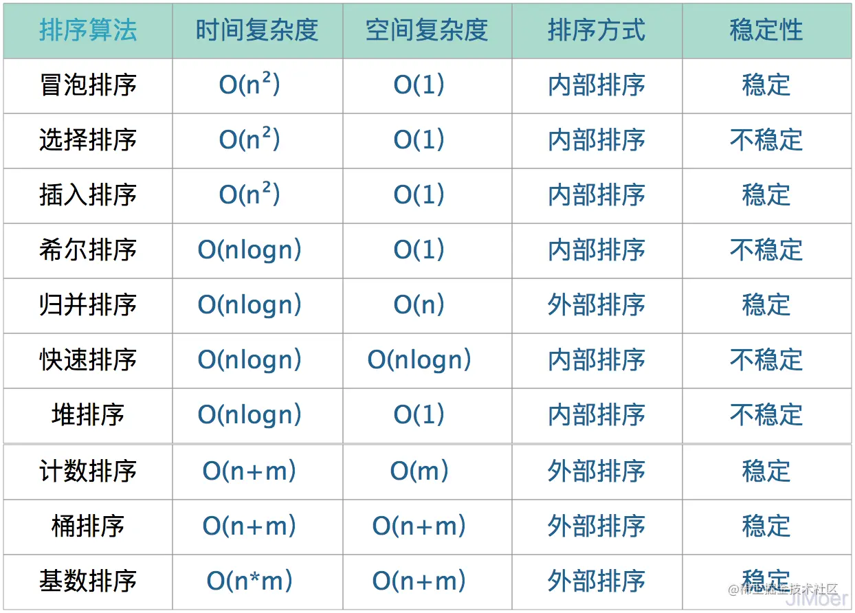 常见的排序算法的这几个关键信息如下: