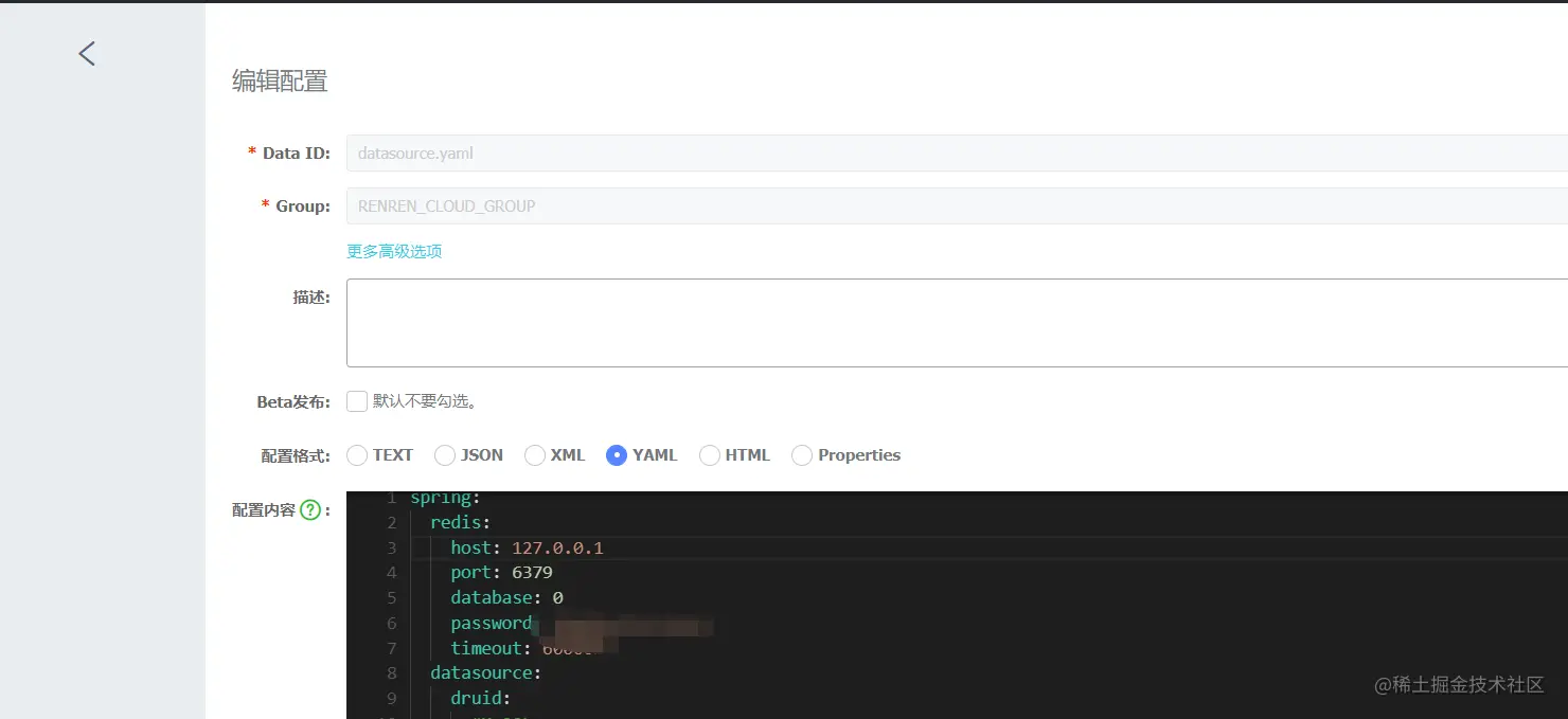 接下来我们在 Nacos 的控制台上将我们的配置信息改为如下图所示: