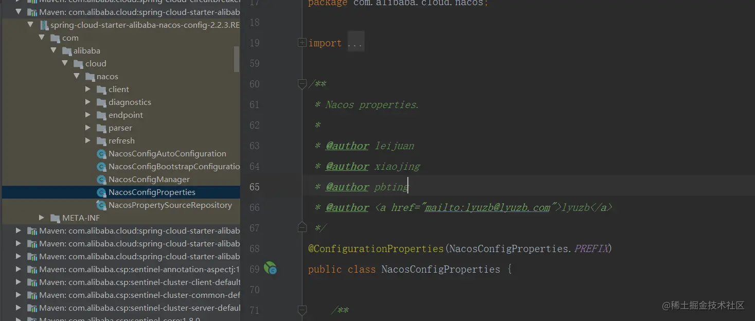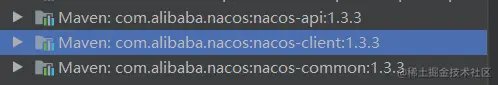 当我们引包结束以后,会发现下面三个关于Nacos的包