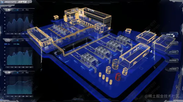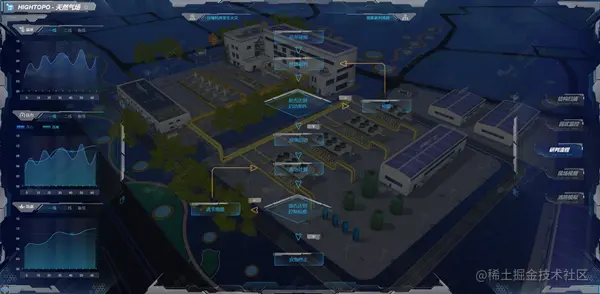 对于燃气产业,利用先进的新兴技术,如人工智能、物联网、BIM 等方式打造全新的管理模式是未来所趋,采用 Hightopo(以下简称 HT )创新的 2D/3D 可视化建模技术,数字孪生天然气站三维可视化系统,提供一套集展示、监控、预警、预案于一体的解决方案。赋能燃气产业向信息化、可视化、绿色化环保方向发展。