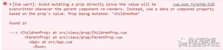 如果prop是非对象值,那当子组件改变该值后,子组件中会修改,但父组件不会被修改,同时vue会抛出一条警告提醒;