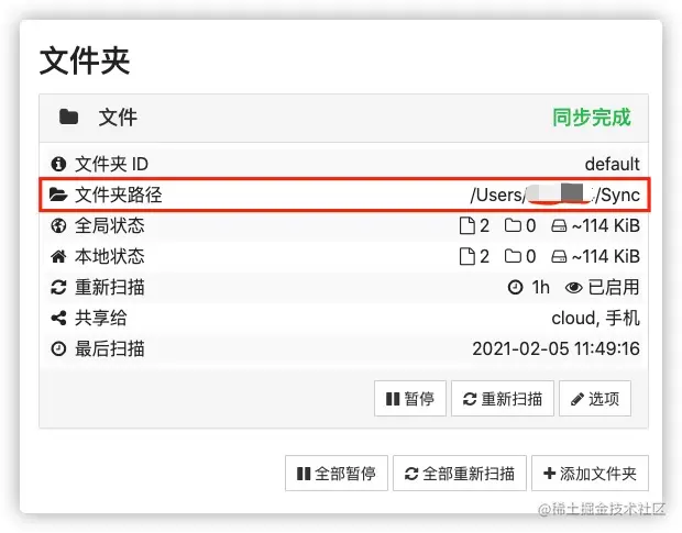 此时已经可以开始使用 Syncthing 了,它会在电脑中创建一个文件夹作为同步目录