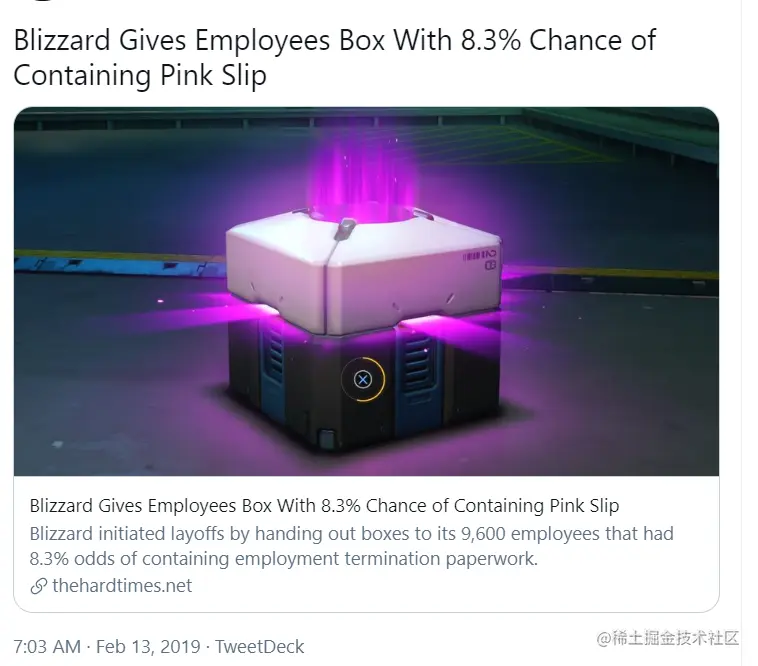 全员发盲盒,“抽奖式”裁员真的的惨回忆起2019年,几乎是同一时间的裁员,暴雪也是热搜榜上最精彩的那一个。