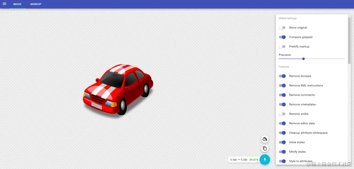 这是另一个很棒的免费在线SVG优化工具,可用于修剪SVG代码。它直观且易于使用。