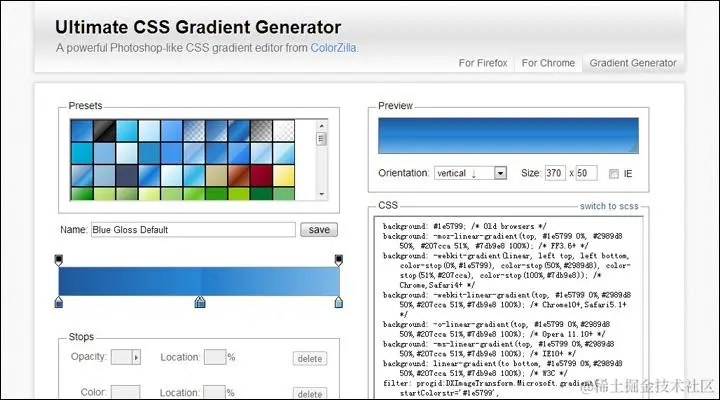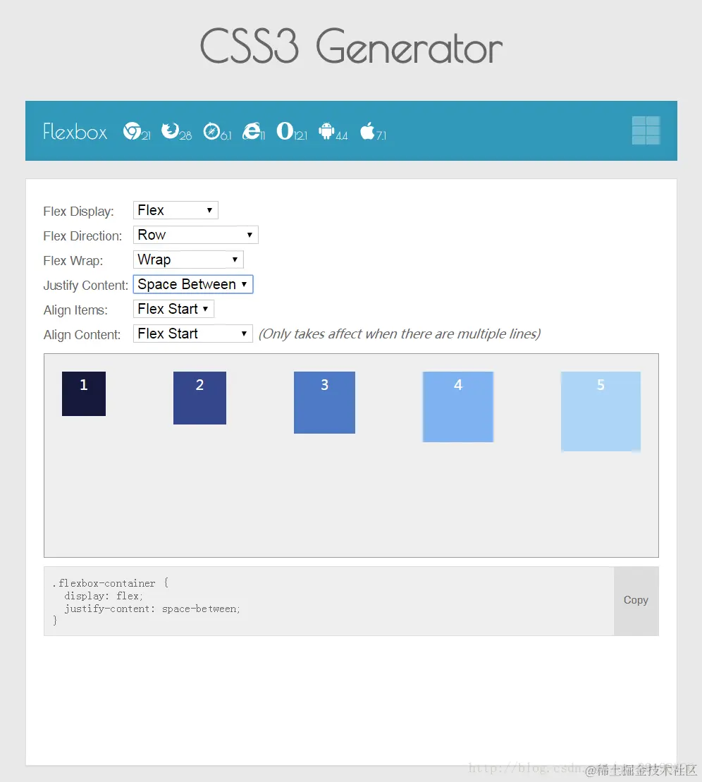 输入所需的CSS值,实时预览结果,复制并粘贴生成的代码。此外,此应用程序还会显示支持CSS代码的浏览器及其版本的列表。