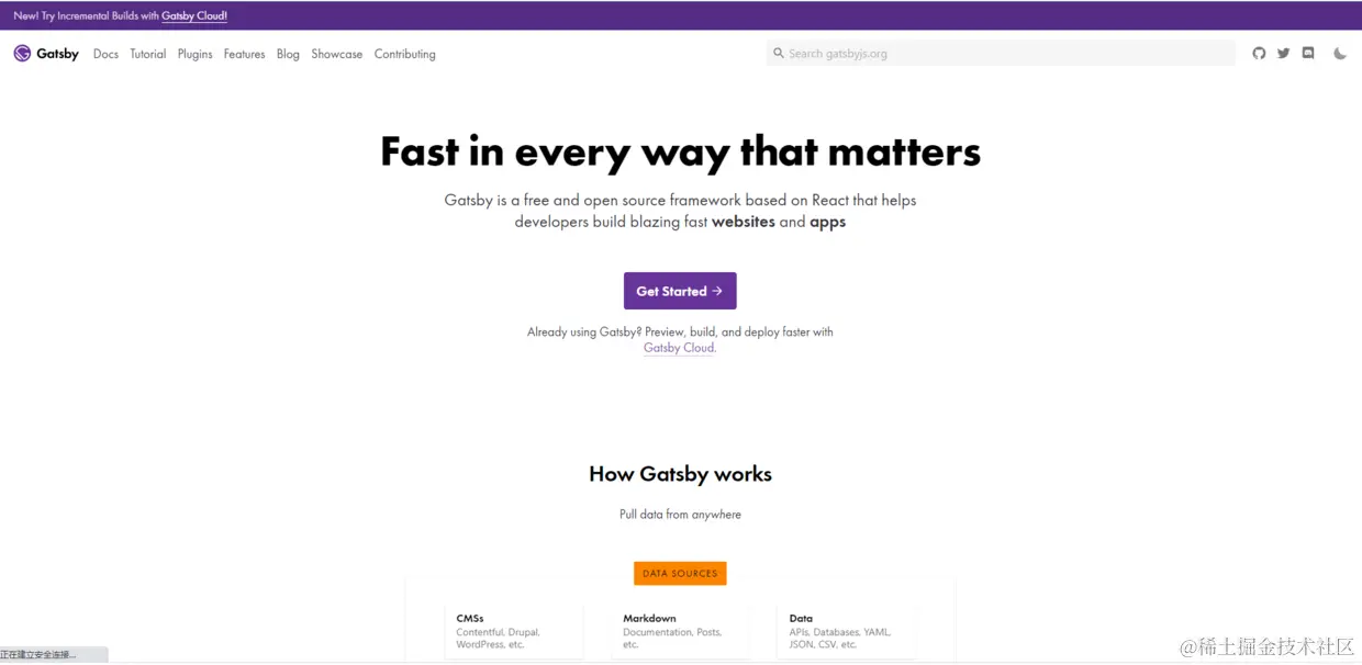 Gatsby是一个基于React的免费开发源代码框架,可帮助开发人员构建快速的网站和应用程序。
