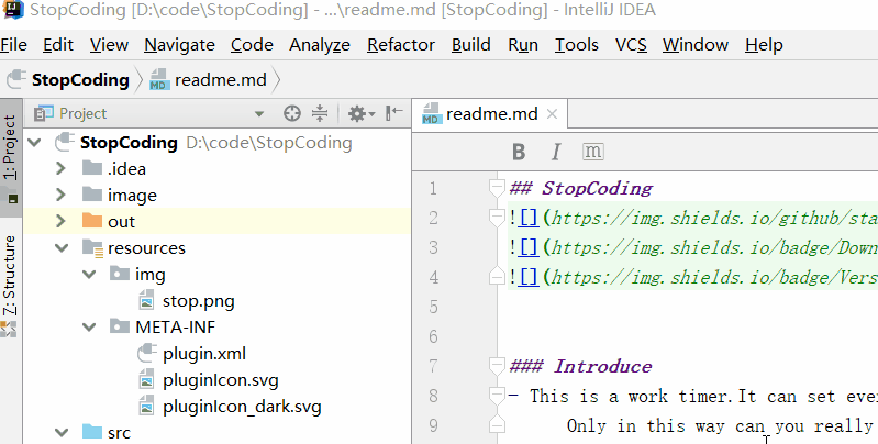 最近我在 IDEA 插件发现了一个有趣的项目 StopCoding 停止代码编写,思路十分的简单。今天,我就借助这个项目及 EOS 插件的相关开发经验,为大家介绍下 IDEA 插件开发的相关操作。