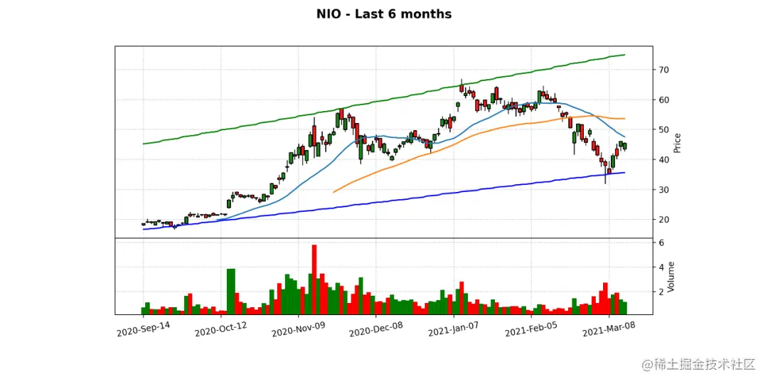使用支撑线和阻力线显示过去6个月的历史数据: