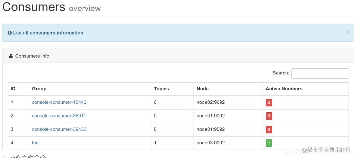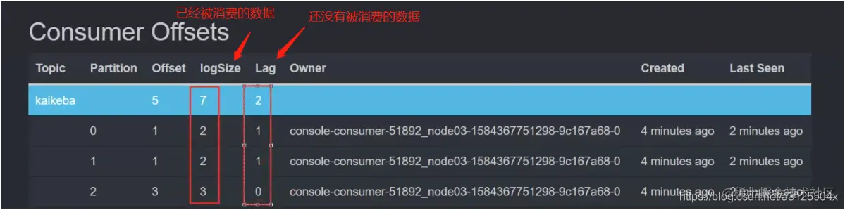(4)对consumer消费情况进行监控,并能列出每个consumer offset,滞后数据。