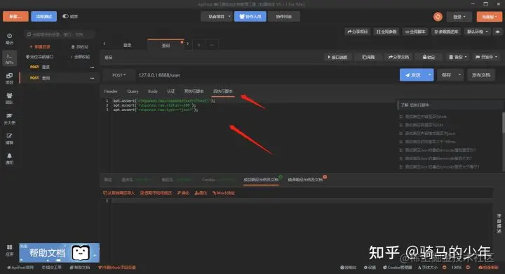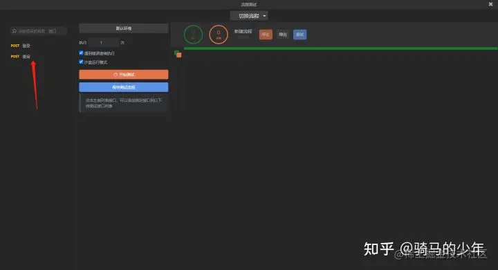 软件测试--接口流程化测试 Gina66 2021-03-22 197 阅读1分钟 在接口编写完成之后,需要就行接口流程化测试,查看接口之间的数据关联性,apipost自带接口流传测试功能 点击流程测试 选择需要进行流程测试的接口 点击开始测试就可以进行流程测试了,流程测试可以查看断言和接口具体请求的信息 我们可以在接口的后执行脚本、目录后执行脚本或者全局后执行脚本中添加断言