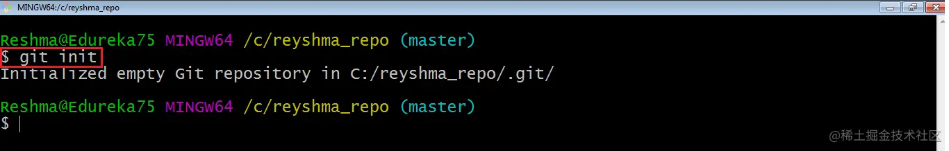 为此,我们使用命令 git init。请参考下面的截图。