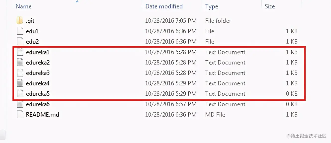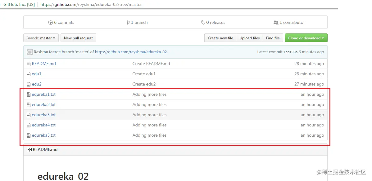 如上所示,分支名称中的所有数据都合并到了master分支中。现在,文本文件 edureka6.txt 已添加到 master 分支中。