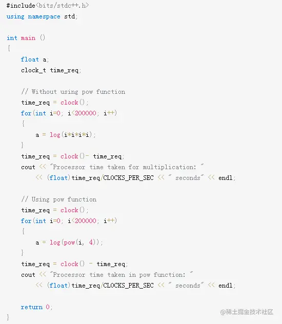 在ctime头文件中定义了clock()函数。clock()函数返回程序消耗的大约处理器时间。clock()时间取决于操作系统如何向进程分配资源,这就是为什么clock()时间可能比实际时钟慢或快的原因。