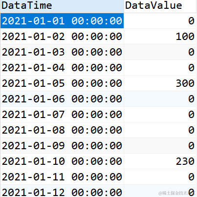 要求:显示1月份所有日期的DataValue值,如果没有值的,就显示为0。