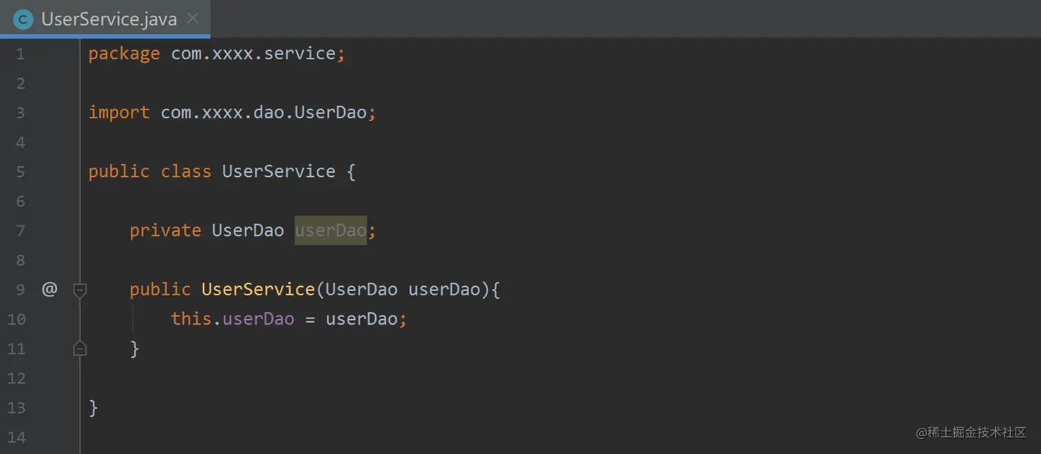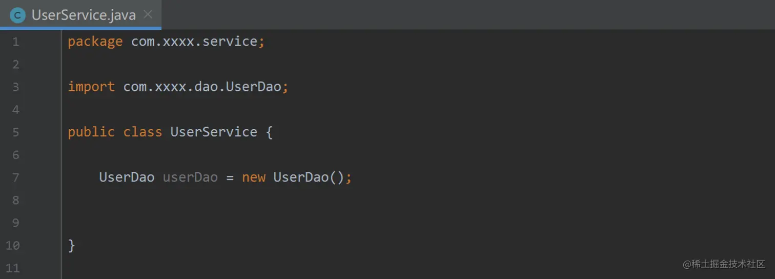 <!-- id:bean对象的id,唯一标识。一般是Bean对象的名称的首字母小写 class:bean对象的类路径 --> <bean id="userService" class="com.xxxx.service.UserService"></bean>