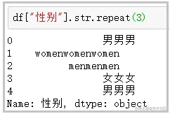 df["性别"].str.repeat(3)