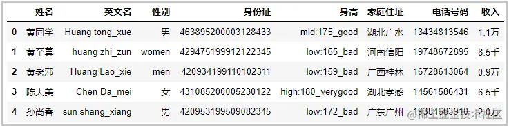 观察上述数据,数据集是乱的。接下来,我们就用16个Pandas来对上述数据,进行数据清洗。