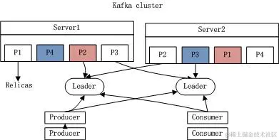 基于replicated方案,那么就意味着需要对多个备份进行调度;一个partition可以在多个server上备份,那么其中一个server作为此partiton的leader;leader负责此partition所有的读写操作,如果leader失效,那么将会有其他follower来接管(成为新的leader);follower只是单调的和leader跟进,同步消息即可..由此可见作为leader的server承载了全部的请求压力,因此从集群的整体考虑,有多少个partitions就意味着有多少个"leader",kafka会将"leader"均衡的分散在每个实例上,来确保整体的性能稳定.[备注:kafka中将leader角色权限下放到partition这个层级]