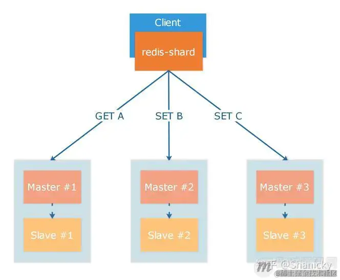 早期知乎使用 redis-shard 进行客户端分片,redis-shard 库内部实现了 CRC32、MD5、SHA1 三种哈希算法 ,支持绝大部分 Redis 命令。使用者只需把 redis-shard 当成原生客户端使用即可,无需关注底层分片。