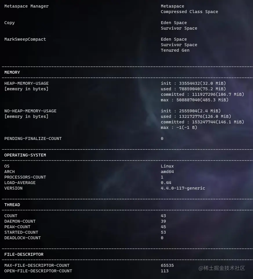 拿到Java进程id后,可以方便地用下面的命令去获取更多的信息。