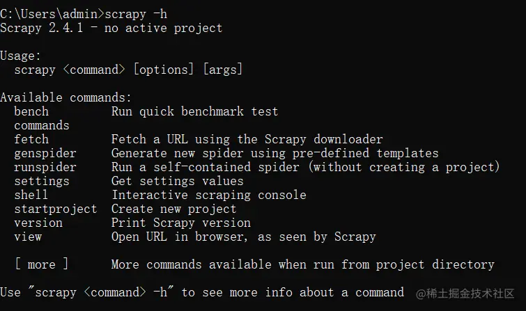 scrapy命令主要分为两种:全局命令和项目命令(使用Scrapy-h可以查看)