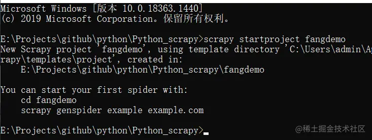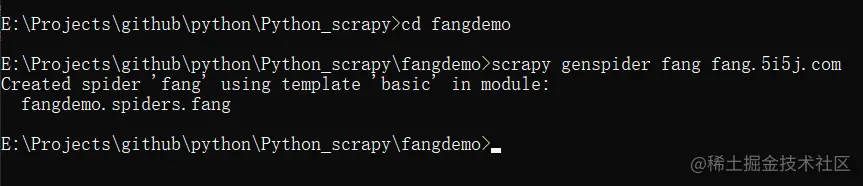 scrapy startproject fangdemo