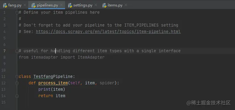 接下来,我们将最后一行的print(item)修改为yield item,那么接下来就会来到管道。