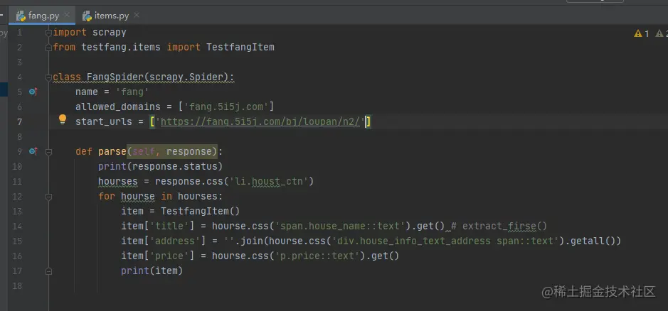 接下来,我们可以在fang.py里面写一些代码进行测试。