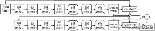 将原图像与补偿图像进行差计算获得残差,残差也使用自编码器压缩。