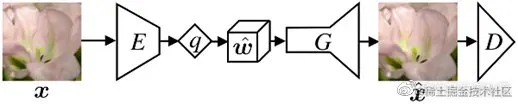 E_E_ 为编码器;q_q_ 为量化器;G_G_ 为解码和生成器;D_D_ 为对抗器。