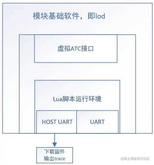 在模块内部,Lua发出AT命令,并通过虚拟的uart.ATC 口和Lod之间进行AT命令的交互。即Lua发出AT命令,Lod接收后进行解析并返回AT命令运行结果,不需要上位机(一般是单片机)通过物理串口给模块发AT命令,这样就节省了单片机的花费。