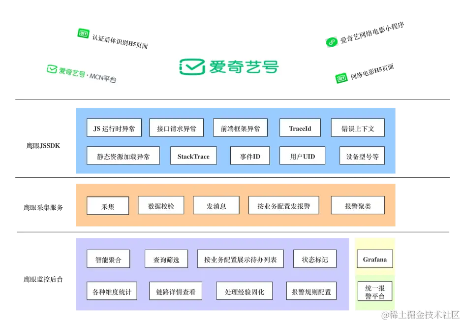 因此我们自研了爱奇艺智能前端监控平台——鹰眼(Hawkeye),目前该平台已接入了爱奇艺内容创作、分发和变现平台的大部分业务,经过几个月的使用,帮助业务及时发现了不少问题,也帮助业务负责人对各自系统的整体的运行状态有了更深入的了解,对线上项目起到了很好的保障作用。