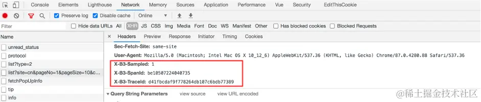 同时,鹰眼也支持前端生成Trace Id,通过设置HTTP请求头实现(如图1-5),请求头遵从公司Rover全链路追踪系统的数据规范。