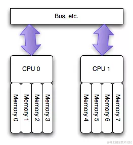 如图所示,NUMA使得每个CPU都有自己专属的内存区域。