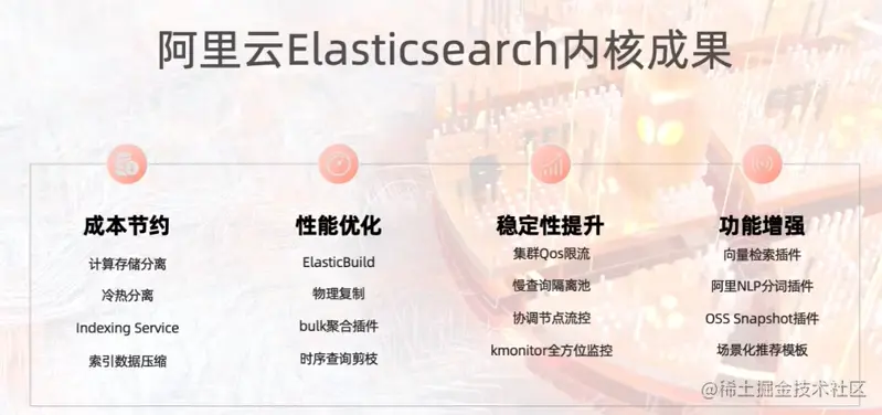 - 性能优化:ElasticBuild、物理复制、 bulk 聚合插件、时序查询剪枝。