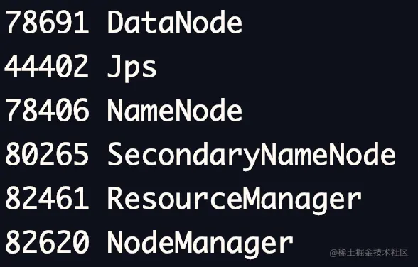 如果在slaves文件中填写了主节点,则在主节点中应该出现5个进程(不包括jps本身),否则为3个:NameNode、SecondaryNameNode、ResourceManager。