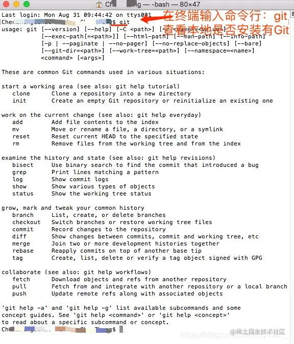 首先检查一下Mac电脑本地是否安装有Git工具,具体操作如下所示: