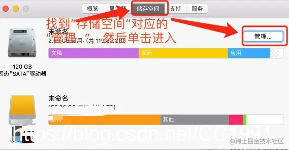 1、打开Mac自带的存储空间管理,找到文件浏览器;